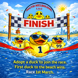 The annual duck derby is a fun way to support the Nipper Program at South Melbourne Life Saving Club.